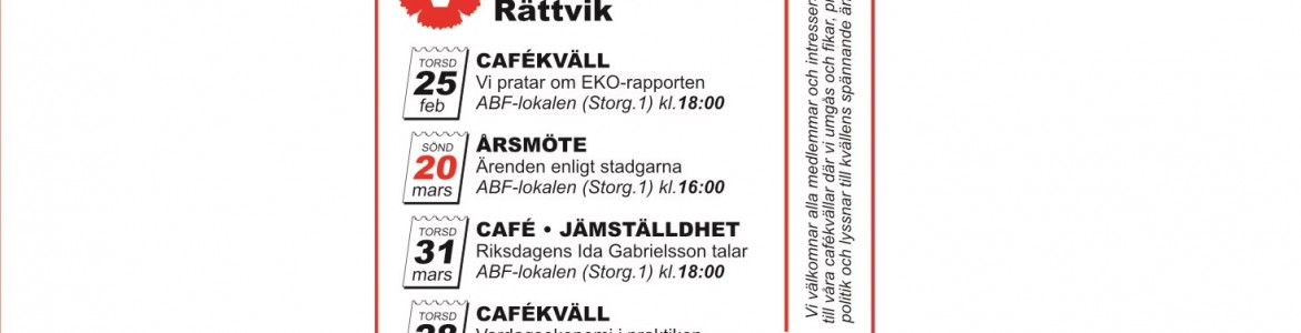 Datum: Onsdagen den 13:e november Tid: 18:00 Plats: ABF i Rättvik på Storgatan 1